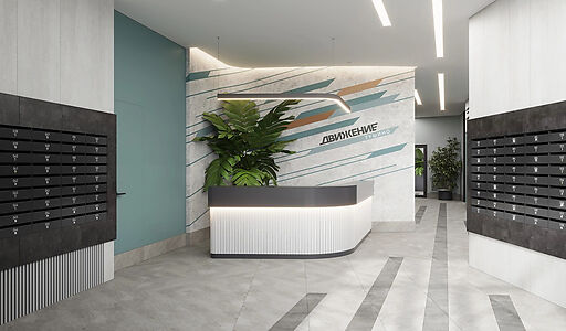 Движение. Тушино представляет собой три монолитных корпуса с разноцветными навесными фасадами и геометрическими узорами высотой от 13 до 22 этажей. Входные группы оформлены по индивидуальному дизайну.