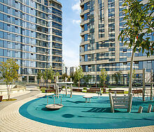 Жилые корпуса представлены в двух линиях:3 корпуса высотой 20 этажей ближе к воде и 2 корпуса высотой 11 и 14 этажей ближе к Ленинградскому шоссе. Застройщиком выступила международная компания Wainbridge, которая ранее реализовала в Москве проекты Soho+Noho и "Фили Парк".