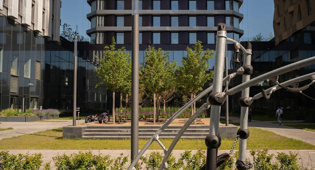 Доступ на территорию ограничен системой контроля с биометрическими считывателям. Двор без машин. Парковая зона с озеленением:лиственные и аллейные деревья, древовидные кустарники.Комплекс бизнес-класса ЖК D1 находится на Севере Москвы рядом с центром города, в 2 минутах от м. «Дмитровская» и в 5 минутах от ж/д станции «Дмитровская».
