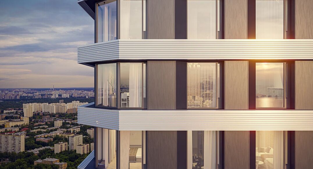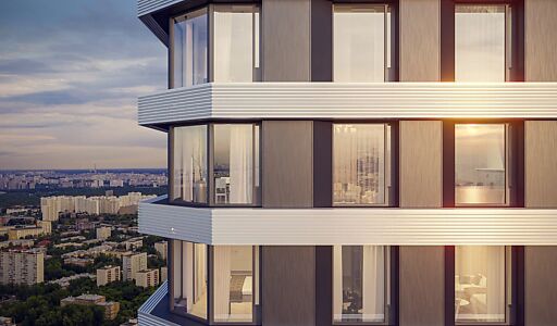 Во всех башнях — панорамные окна в пол. Стекло выдерживает все ветровые и климатические нагрузки, при повреждении остаётся в раме. Конструкция стёкол обеспечивает защиту от солнца, теплоизоляцию, низкую просматриваемость с улицы и высокое шумоподавление. Интерьеры мест общего пользования — лобби, входные группы, лифтовые зоны — оформлены в минималистичном стиле.