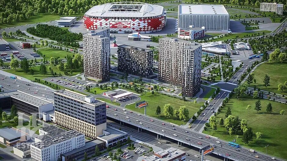 В нескольких сотнях метров находится стадион Открытие Арена, что может быть связано с «физкультурным» названием комплекса.