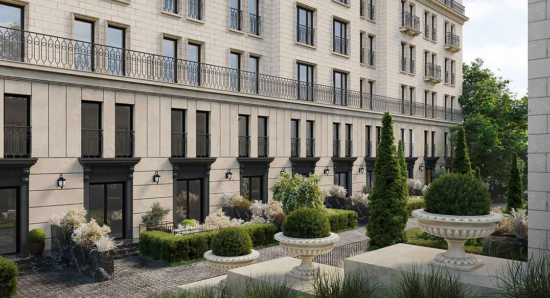 Фасады клубного дома “Quartier d’Or” (Золотой Квартал) выполнены в неоклассическом стиле с изящными порталами и французскими балконами, отдавая дань изысканному Парижу, элегантно вписанными в исторический район Замоскворечья, сочетают очарование купеческой Москвы с современным европейским взглядом на роскошь.