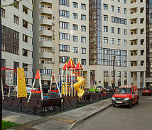 Помимо этого, в состав комплекса входят две парковки:наземная (предназначенная по большей части для гостей) и состоящая из нескольких уровней подземная (она рассчитана непосредственно на жильцов ЖК и на ней можно разместить 535 машин).