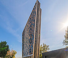 Архитектурный облик ЖК «Level Стрешнево» отличается изысканностью и продуманностью деталей. Четыре 24-25-этажных башни - «Север», «Запад», «Юг» и «Восток» - гармонично сочетаются друг с другом, создавая цельный, выразительный ансамбль. Особенно выделяется корпус «Восток», выполненный в форме перевернутой трапеции, где площадь этажей увеличивается по мере подъема. Скругленные окна, имитирующие волны Москвы-реки, и фасады, окрашенные в теплые оттенки, подчеркивают современный и гармоничный облик зданий.