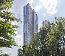 Жилой комплекс «Маяковский» – это три здания высотой 36 этажей, которые располагаются в Войсковском районе (на Головинском шоссе) рядом с Химкинским водохранилищем и парком «Головинские пруды».