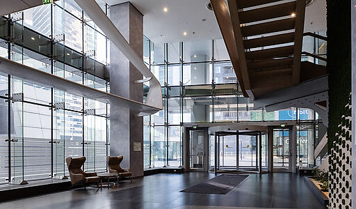 Для остекления панорамных окон башни использовались триплексные зеркальные стеклопакеты из ударопрочного стекла, которые по результатам краш-тестов показали высокую устойчивость как к ударам частями тела, так и предметами мебели. Благодаря большой стеклянной поверхности повышается энергоэффективность небоскреба, поскольку большое количество естественного света проникает сквозь окна.