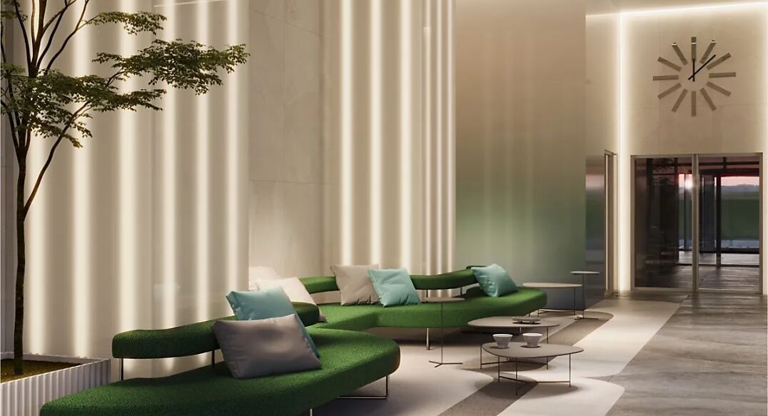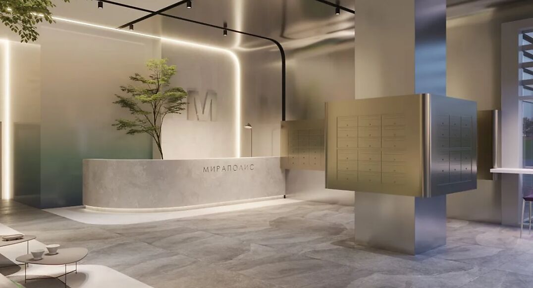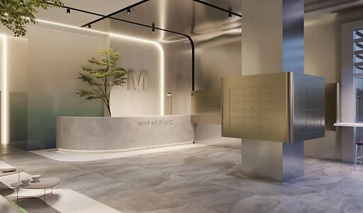 Функциональные лобби с дизайнерской отделкой. Каждая из четырех башен Мираполиса оснащена функциональным, просторным лобби с авторской отделкой и панорамным остеклением. Это многофункциональное пространство для отдыха, общения и встречи гостей. В распоряжении жителей Мираполиса:мягкие зоны ожидания, игровые для детей, колясочные, комнаты матери и ребенка, гостевые санузлы, комнаты для мытья лап домашних животных, бесшумные скоростные лифты и круглосуточный консьерж-сервис.