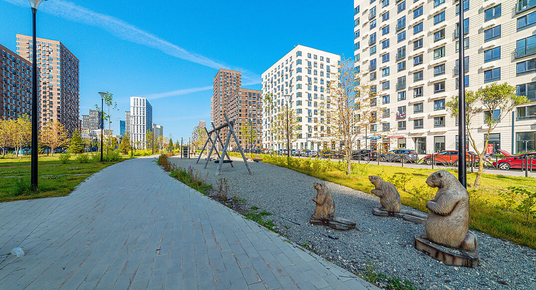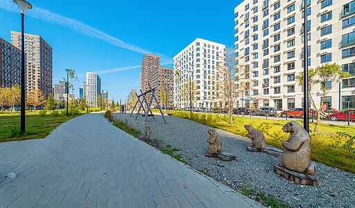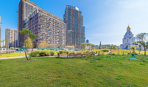 Выразительная архитектура и благоустроенный двор разработаны именитой мастерской ATRIUM. Корпуса Клубного города расположены таким образом, что большая часть квартир смотрит на воду и зелень, а панорамные окна от пола до потолка увеличивают угол обзора до 270 градусов.