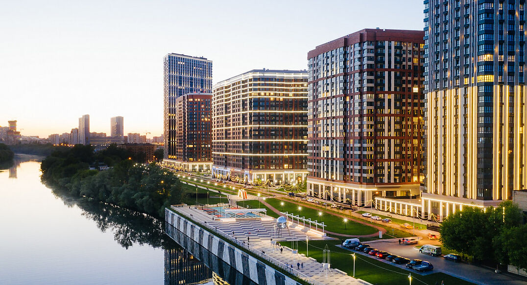 В комплексе также есть своя торговая зона, фитнес-центр, детские сады и школы, аптеки, рестораны и магазины, что делает жизнь здесь максимально комфортной и удобной.