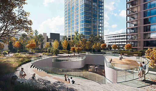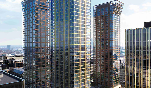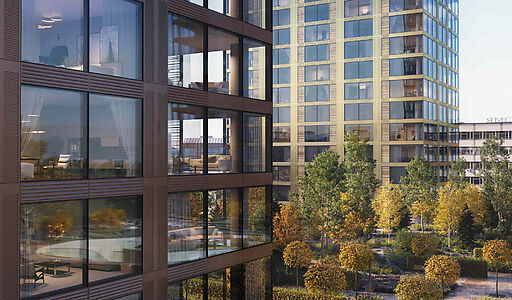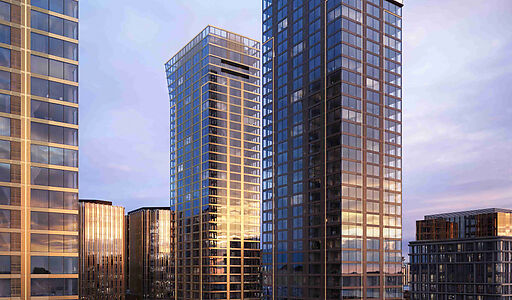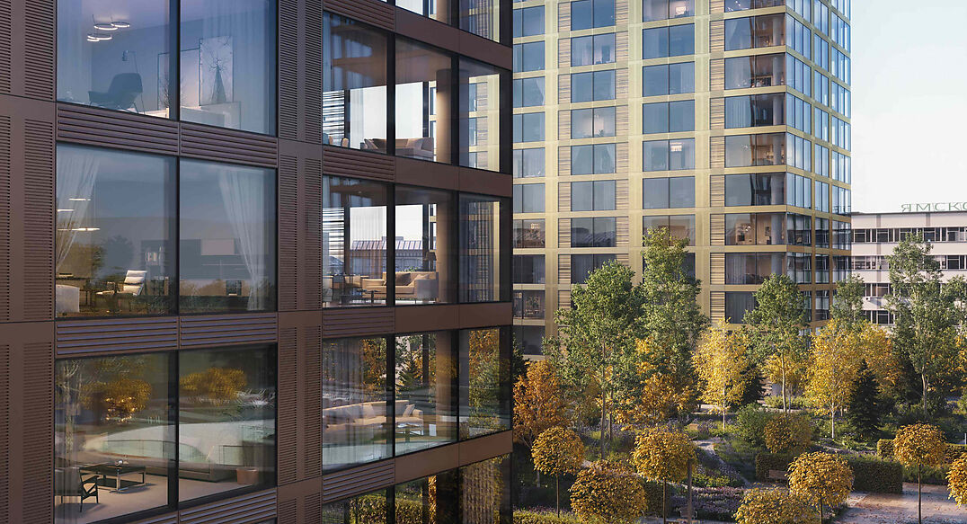 Башни SLAVA вступают в диалог с растущим вверх городом, несколькими поколениями высотных зданий - от высоток середины прошлого столетия, до новых и пестрых высоток Сити. Панорамные окна квартир в башнях — открытый взгляд на мир вокруг, Москву, соседние дома, настоящее и будущее города.