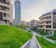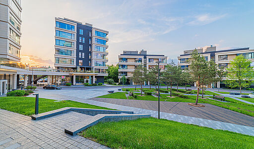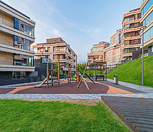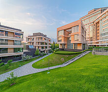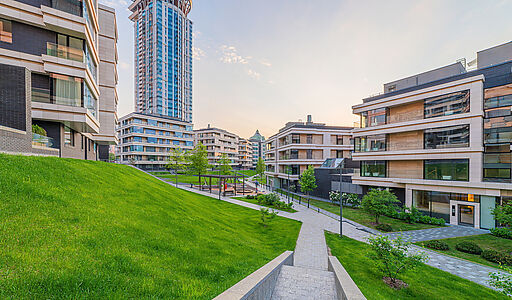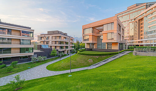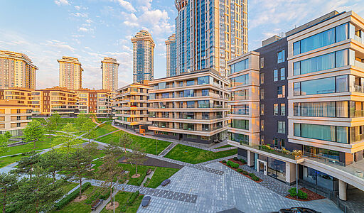 На территории комплекса находится современный детский сад, многофункциональный SPA-комплекс с фитнес-залом, роскошный ресторан, минимаркет с продуктами ежедневного спроса, салон красоты, прачечная.
