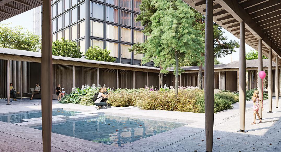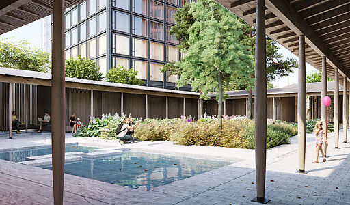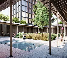 Это жилая среда помогает раскрывать человеческий потенциал и сохранять эмоции на самой высокой ноте. Приватный лаунж в японском стиле, с водоёмом, цветниками, арт-зоной, мини-лесом, павильоном с местами для отдыха и пространством community space. Именно здесь вы ощутите особую защищённость и оторванность от городской суеты. Пергола скроет вас от ярких солнечных лучей, а вечером, благодаря мягкому освещению, здесь вы ощутите романтическое настроение.