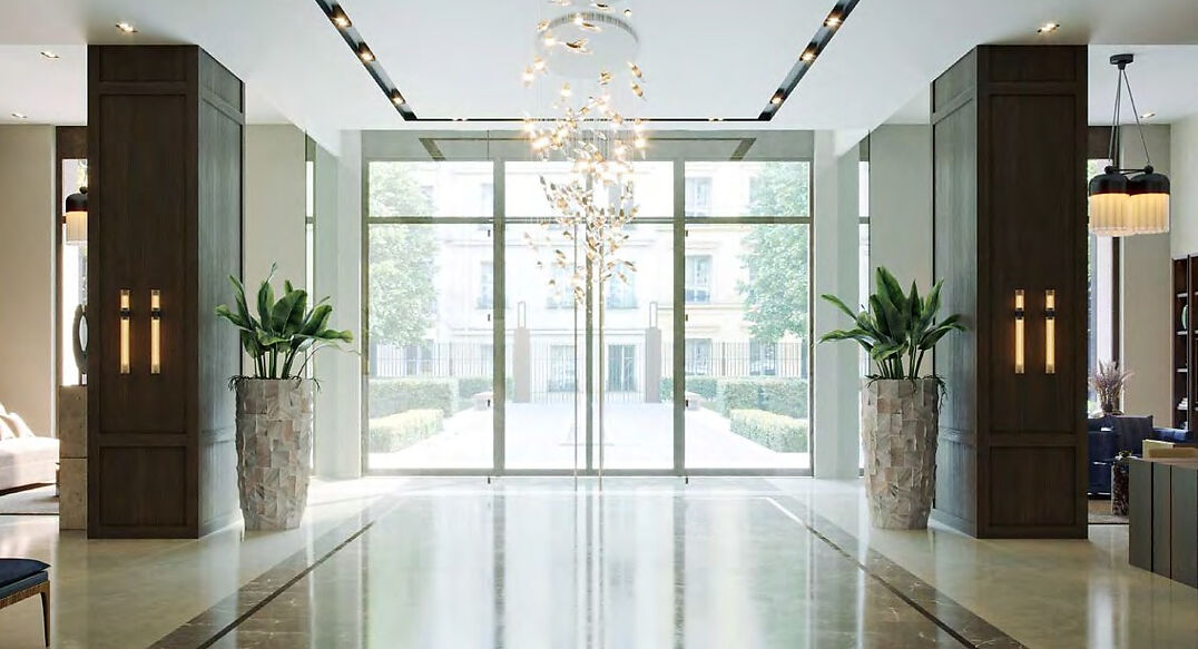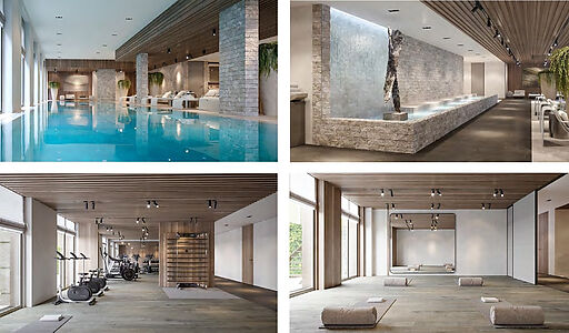 Внутри комплекса предусматривается переходная галерея, соединяющая лифтовые холлы каждой секции с цокольным этажом. Жители клубного дома смогут посещать помещения инфраструктуры, не выходя за территорию комплекса: Лобби, ресторан и кинотеатр, винная и сигарная комнаты, wellness и fitness, консьерж-служба.
